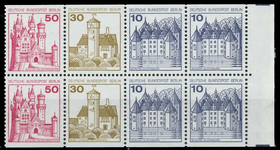 Berlin Burgen und Schlösser Heftchenblatt 18 / 50+30+10+10 (MichelNr.: 18, 532C/D, 534C/D, 536C/D)