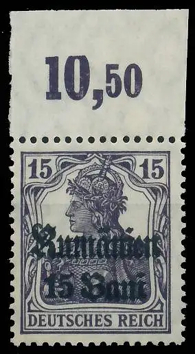 15 Bani auf 15 Pfg Aufdruckausgabe Deutsche Militärverwaltung in Rumänien auf den Freimarken des deutschen Reiches (Germania 1916/1918) - Aufdruck Rumänien (Frakturschrift) und neue Wertangabe