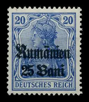 25 Bani auf 20 Pfg Aufdruckausgabe Deutsche Militärverwaltung in Rumänien auf den Freimarken des deutschen Reiches (Germania 1916/1918) - Aufdruck Rumänien (Frakturschrift) und neue Wertangabe (dunkelblau)