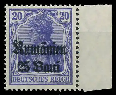 25 Bani auf 20 Pfg Aufdruckausgabe Deutsche Militärverwaltung in Rumänien auf den Freimarken des deutschen Reiches (Germania 1916/1918) - Aufdruck Rumänien (Frakturschrift) und neue Wertangabe (violettblau)