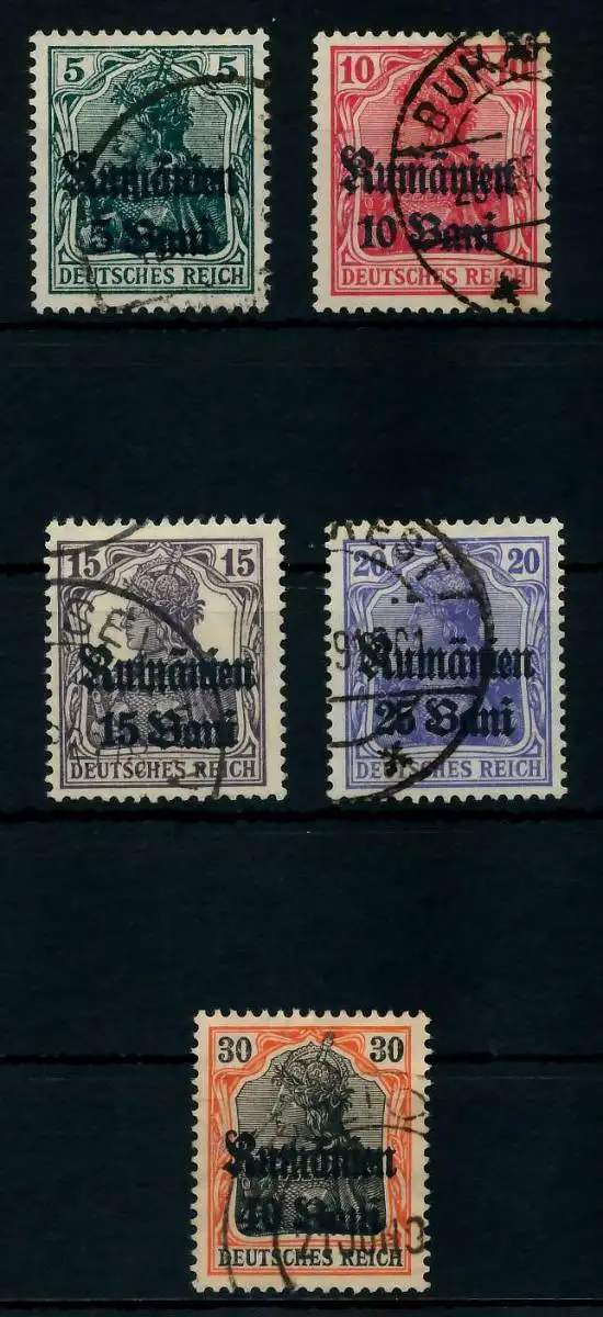 Aufdruckausgabe Deutsche Militärverwaltung in Rumänien auf den Freimarken des deutschen Reiches (Germania 1916/1918) - Aufdruck Rumänien (Frakturschrift) und neue Wertangabe