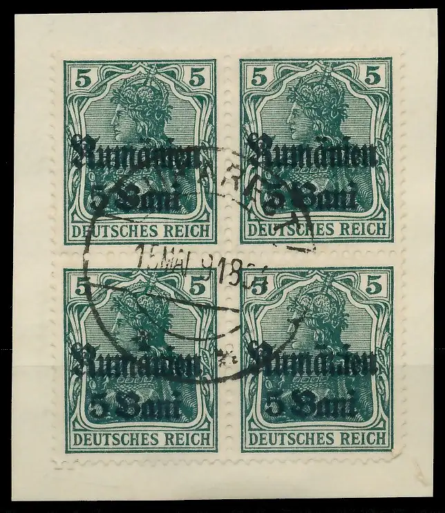 BES. 1WK D-MV RUMÄNIEN Nr 8a zentrisch gestempelt VIERERBLOC 410EBA