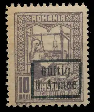 10 Bani Kriegssteuermarke (Deutsche Besetzung Rumänien), grauviolett, mit Aufdruck "Gültig für 9. Armee" (Fiskalmarke)