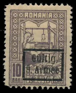 10 Bani Kriegssteuermarke (Deutsche Besetzung Rumänien), grauviolett, mit Aufdruck "Gültig für 9. Armee" (Fiskalmarke), großer Falzrest
