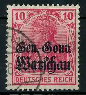 10 Pfg Wert aus der Aufdruckausgabe Deutsche Post in Polen auf den Freimarken des deutschen Reiches (Germania 1916/1918) - Aufdruck Gen.-Gouv. Warschau