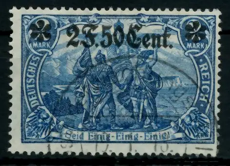 2 Franc 50 C auf 2 Mark Wert aus der Aufdruckausgabe Etappengebiet West auf den Freimarken des deutschen Reiches (Germania 1914/1918) 25:17