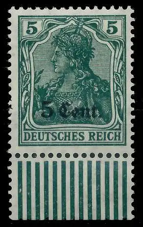 5 Cent auf 5 Pfg Wert aus der Aufdruckausgabe Etappengebiet West auf den Freimarken des deutschen Reiches (Germania 1914/1918), Zw 0,9mm