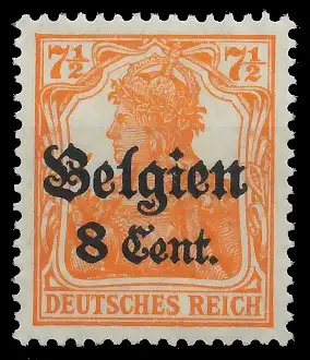 8 Cent auf 7 1/2 Pfg Wert aus der Aufdruckausgabe Landespost in Belgien (Generalgouvernement) auf den Freimarken des deutschen Reiches (Germania 1916/1918), mit kurzem Aufdruck