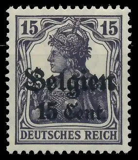 15 Cent auf 15 Pfg Wert aus der Aufdruckausgabe Landespost in Belgien (Generalgouvernement) auf den Freimarken des deutschen Reiches (Germania 1916/1918), mit kurzem Aufdruck