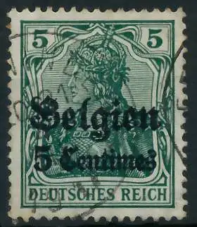 5 Centimes auf 5 Pfg Wert aus der Aufdruckausgabe Landespost in Belgien (Generalgouvernement) auf den Freimarken des deutschen Reiches (Germania 1914/1918)