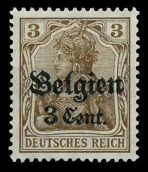 3 Cent auf 3 Pfg Wert aus der Aufdruckausgabe Landespost in Belgien (Generalgouvernement) auf den Freimarken des deutschen Reiches (Germania 1916/1918), mit kurzem Aufdruck
