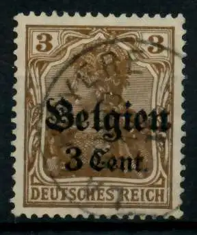 3 Cent auf 3 Pfg Wert aus der Aufdruckausgabe Landespost in Belgien (Generalgouvernement) auf den Freimarken des deutschen Reiches (Germania 1916/1918), mit kurzem Aufdruck
