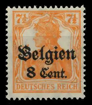 8 Cent auf 7 1/2 Pfg Wert aus der Aufdruckausgabe Landespost in Belgien (Generalgouvernement) auf den Freimarken des deutschen Reiches (Germania 1916/1918), mit kurzem Aufdruck