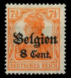8 Cent auf 7 1/2 Pfg Wert aus der Aufdruckausgabe Landespost in Belgien (Generalgouvernement) auf den Freimarken des deutschen Reiches (Germania 1916/1918), mit kurzem Aufdruck