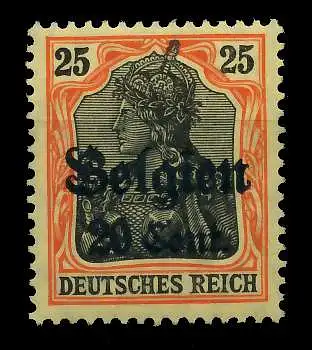 20 Cent auf 25 Pfg Wert aus der Aufdruckausgabe Landespost in Belgien (Generalgouvernement) auf den Freimarken des deutschen Reiches (Germania 1916/1918), mit kurzem Aufdruck