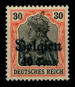 40 Cent auf 30 Pfg Wert aus der Aufdruckausgabe Landespost in Belgien (Generalgouvernement) auf den Freimarken des deutschen Reiches (Germania 1916/1918), mit kurzem Aufdruck
