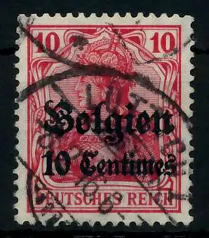 10 Centimes auf 10 Pfg Wert aus der Aufdruckausgabe Landespost in Belgien (Generalgouvernement) auf den Freimarken des deutschen Reiches (Germania 1914/1918)