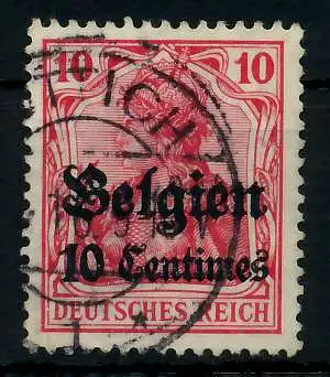 10 Centimes auf 10 Pfg Wert aus der Aufdruckausgabe Landespost in Belgien (Generalgouvernement) auf den Freimarken des deutschen Reiches (Germania 1914/1918)