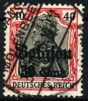 50 Centimes auf 40 Pfg Wert aus der Aufdruckausgabe Landespost in Belgien (Generalgouvernement) auf den Freimarken des deutschen Reiches (Germania 1914/1918)