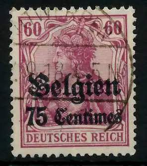 75 Centimes auf 60 Pfg Wert aus der Aufdruckausgabe Landespost in Belgien (Generalgouvernement) auf den Freimarken des deutschen Reiches (Germania 1914/1918)