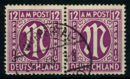 BIZONE AM-POST Nr 15aAz gestempelt WAAGR PAAR 76363E