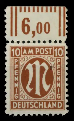 10 Pfg Wert aus der Freimarkenausgabe "M" im Oval, deutscher Druck, Papier z, Zähnung A, Oberrand gefaltet