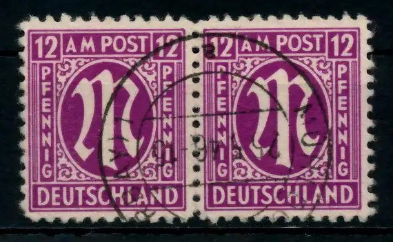 BIZONE AM-POST Nr 7z zentrisch gestempelt WAAGR PAAR 760C82