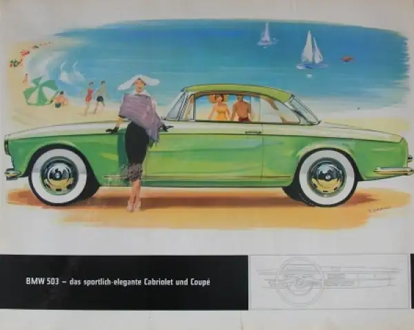 BMW 507 Touring Sport Roadster Modellprogramm 1957 Automobilprospekt (5810)