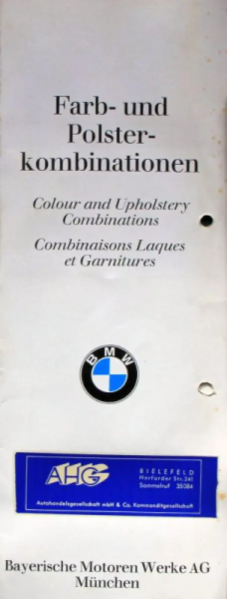 BMW Modellprogramm Farben und Polster 1970 Automobilprospekt (4508)