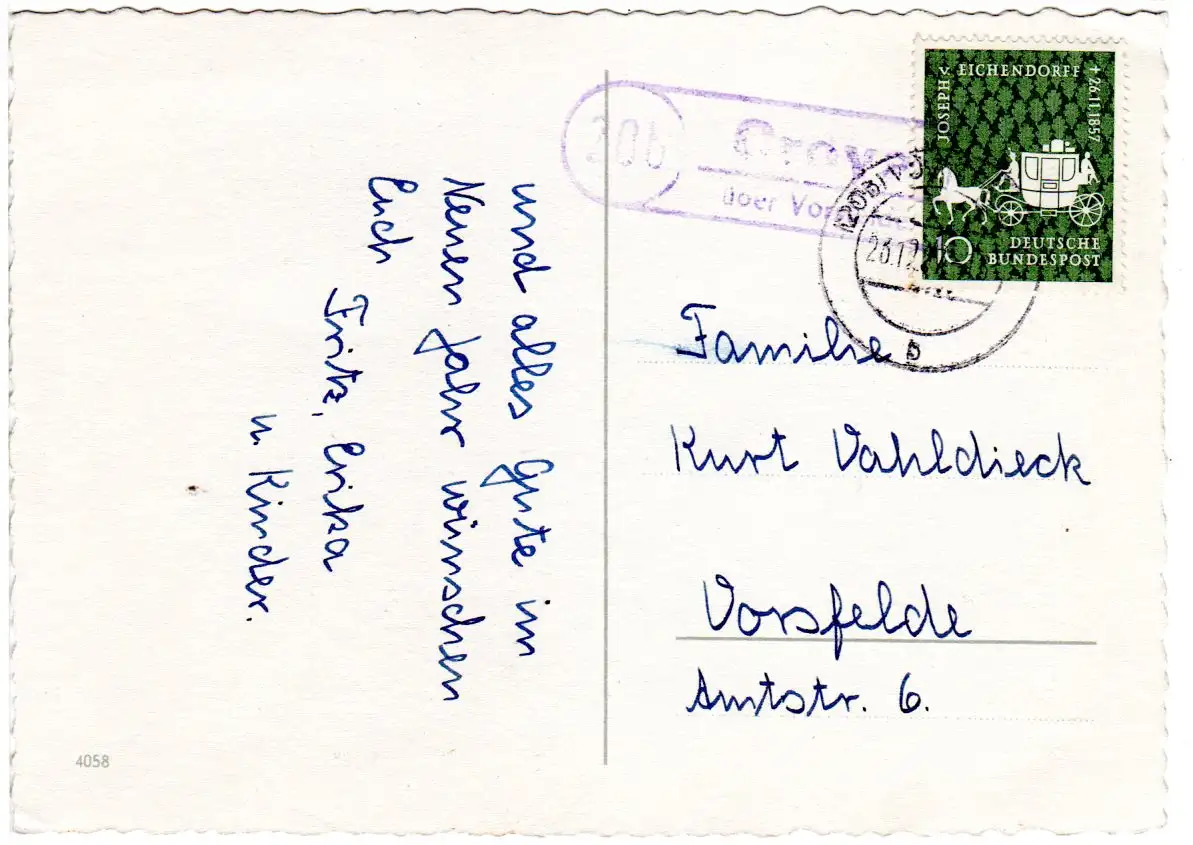 BRD 1957, Landpoststpl. 20b CROYA über Vorsfelde auf AK m. 10 Pf.