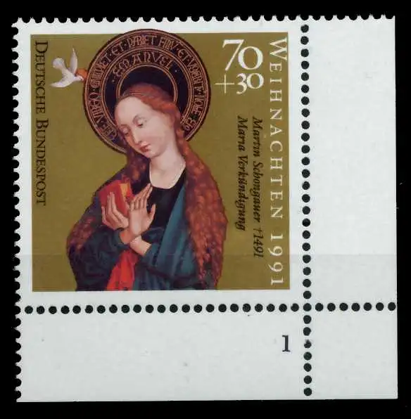 70 + 30 Pfg Wert aus der Ausgabe Weihnachten 1991 - 500. Todestag von Martin Schongauer