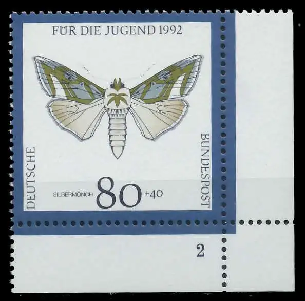 80 + 40 Pfg Wert aus der Ausgabe Jugend 1992 - Nachtfalter / Schmetterlinge