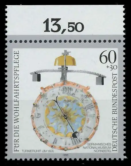 60 + 30 Pfg Wert aus der Ausgabe Wohlfahrt 1992 - alte Uhren