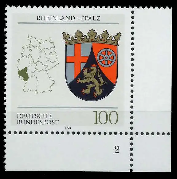 100 Pfg Wert aus der Ausgabe Wappen der Länder - Rheinland-Pfalz