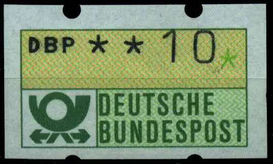 010 Pfg Wert aus der 1. ATM Ausgabe von 1981 - Enblem der Deutschen Bundespost mit rückseitiger Nummer
