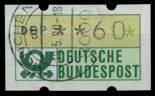 060 Pfg Wert aus der 1. ATM Ausgabe von 1981 - Enblem der Deutschen Bundespost mit rückseitiger Nummer