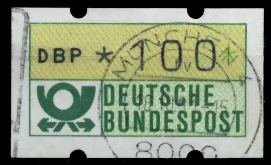100 Pfg Wert aus der 1. ATM Ausgabe von 1981 - Enblem der Deutschen Bundespost mit rückseitiger Nummer