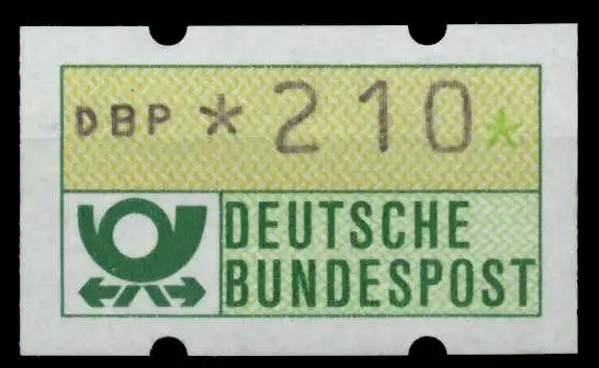 210 Pfg Wert aus der 1. ATM Ausgabe von 1981 - Enblem der Deutschen Bundespost