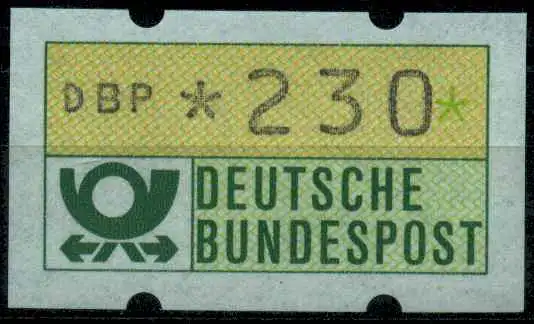 230 Pfg Wert aus der 1. ATM Ausgabe von 1981 - Enblem der Deutschen Bundespost mit rückseitiger Nummer