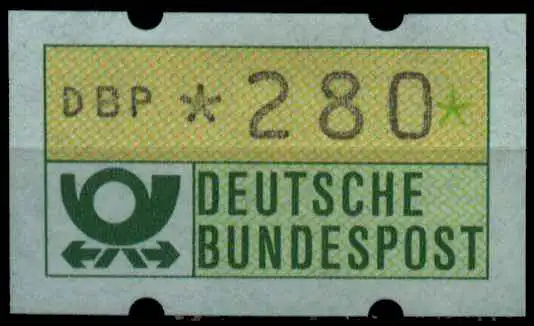 280 Pfg Wert aus der 1. ATM Ausgabe von 1981 - Enblem der Deutschen Bundespost mit rückseitiger Nummer
