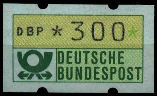 300 Pfg Wert aus der 1. ATM Ausgabe von 1981 - Enblem der Deutschen Bundespost mit rückseitiger Nummer