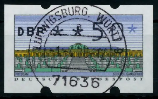 Kategorie 1: Deutschland, Bundesrepublik, Automatenmarken BRD, Ausgabe 1993 Sanssouci - ohne rs. Nr.