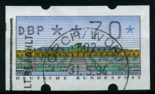 Kategorie 1: Deutschland, Bundesrepublik, Automatenmarken BRD, Ausgabe 1993 Sanssouci - ohne rs. Nr.