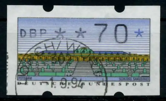 Kategorie 1: Deutschland, Bundesrepublik, Automatenmarken BRD, Ausgabe 1993 Sanssouci - ohne rs. Nr.