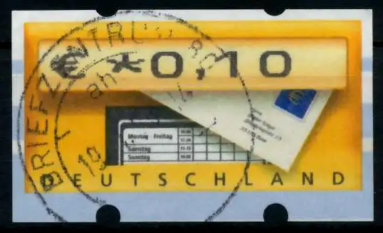 0,10 Euro Wert aus der ATM Ausgabe von 2002, mit Briefkastenlogo, Werteindruck 28mm lang