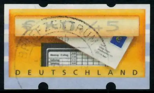 0,45 Euro Wert aus der ATM Ausgabe von 2002, mit Briefkastenlogo, Werteindruck 28mm lang