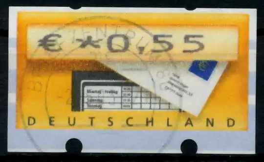 0,55 Euro Wert aus der ATM Ausgabe von 2002, mit Briefkastenlogo, Werteindruck 28mm lang