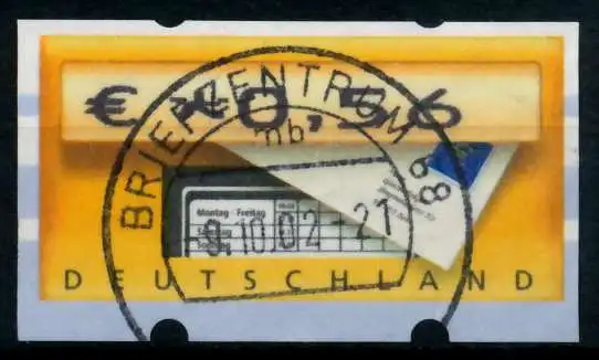 Kategorie 1: Deutschland, Bundesrepublik, Automatenmarken BRD, Ausgabe 2002 Briefkasten Euro - ohne rs. Nr.