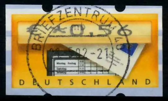 0,56 Euro Wert aus der ATM Ausgabe von 2002, mit Briefkastenlogo, Werteindruck 28mm lang
