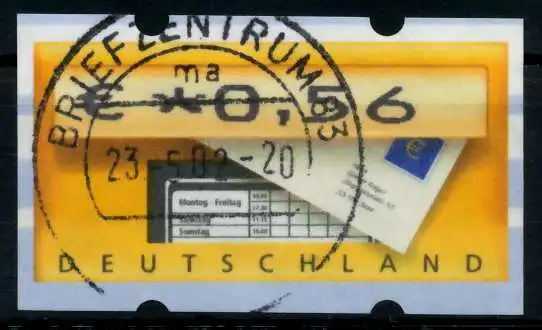 0,56 Euro Wert aus der ATM Ausgabe von 2002, mit Briefkastenlogo, Werteindruck 28mm lang